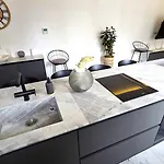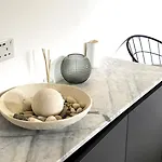 - ❓Există o bucătărie disponibilă la apartamentul pentru oaspeți?Da, apartamentul dotată cu o bucătărie și oferă un cuptor cu microunde și frigider.